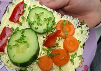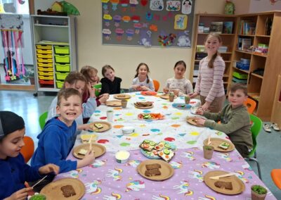 Ein besonderes Highlight ist das Verstecken der Osternester im Garten, das bei den Kindern für große Aufregung und strahlende Gesichter sorgt. Auch das gemeinsame Feiern kommt nicht zu kurz: Mit selbst zubereiteten Jausenbroten genießen die Kinder gemütliche und gesellige Momente miteinander.