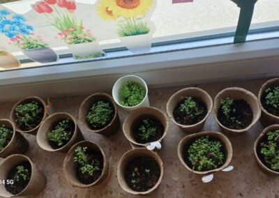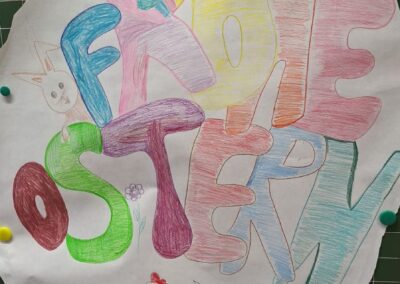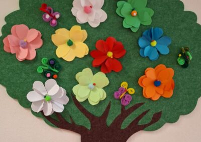 Mit viel Freude und Kreativität werden die Gruppenräume mit fröhlichen Basteleien dekoriert. Überall entstehen bunte Kunstwerke, die für eine warme und frühlingshafte Atmosphäre sorgen.