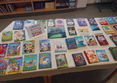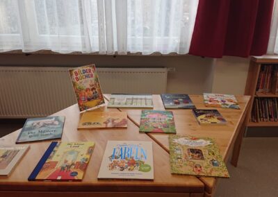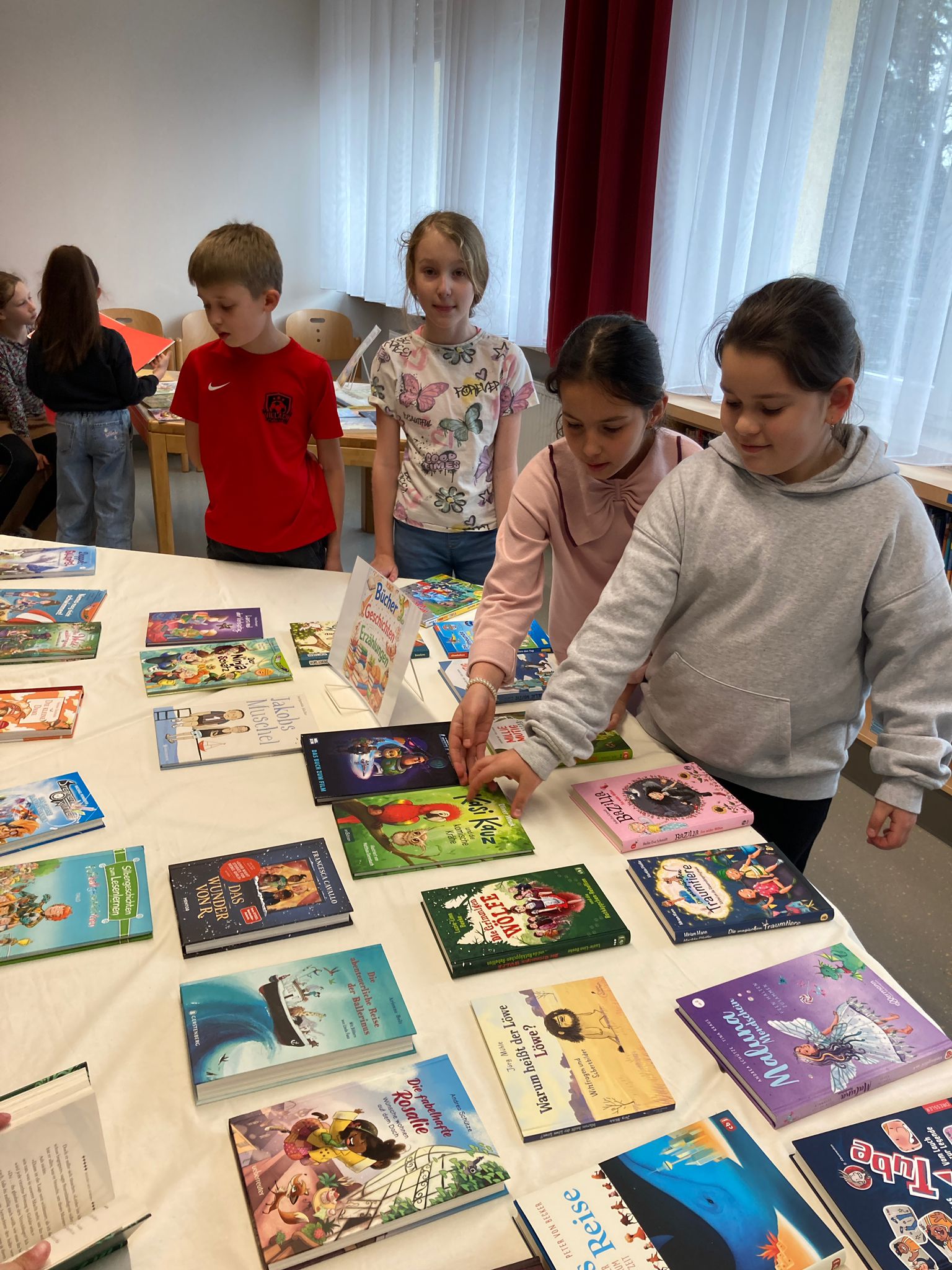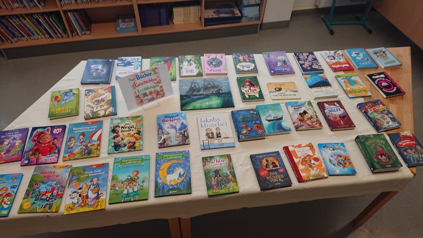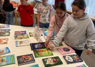 Vom 9. bis 15. April fand in unserer Bibliothek eine LESEWELTEN – Buchausstellung statt. Die Kinder konnten sich ausgiebig mit tollen Büchern beschäftigen. Es war für alle etwas dabei, egal ob Geschichten-, Bilder – oder Sachbücher, Comic-Romane, Rätsel- und Detektivgeschichten, die Auswahl war riesig. Die Begeisterung war spürbar und eine große Freude für Kinder und Lehrerinnen. SCHMÖKERN – STAUNEN – LACHEN – MITEINANDER INS GESPRÄCH KOMMEN Die Kinder konnten sich schon Wunschbücher notieren und mit dem Einverständnis der Eltern eine Bestellung aufgeben. Wir wollen gemeinsam mit den Eltern die Lesefreude fördern und unsere Kinder den Zauber von Büchern erleben lassen. Und wir dürfen alle 80 Bücher für unsere Bibliothek behalten! Vielen Dank an die LESEWELTEN KG!