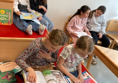 Durch vielfältige Projekte, kreative Zugänge und gemeinsame Leseerlebnisse begleiten wir unsere Schülerinnen und Schüler auf ihrem Weg zu sicheren und begeisterten Leserinnen und Lesern. Dabei ist uns die enge Zusammenarbeit mit den Eltern besonders wichtig – denn Lesefreude entsteht am besten gemeinsam.