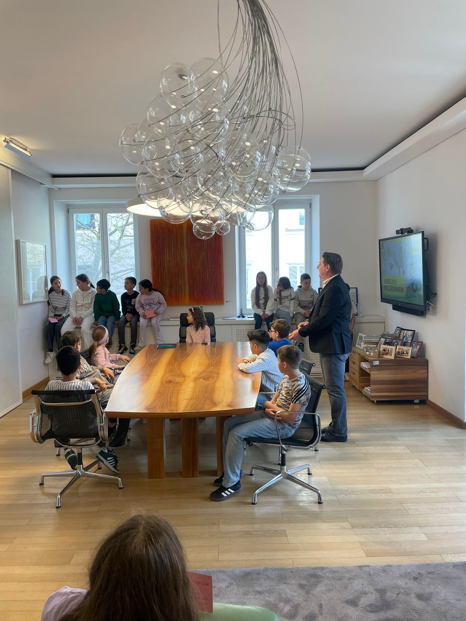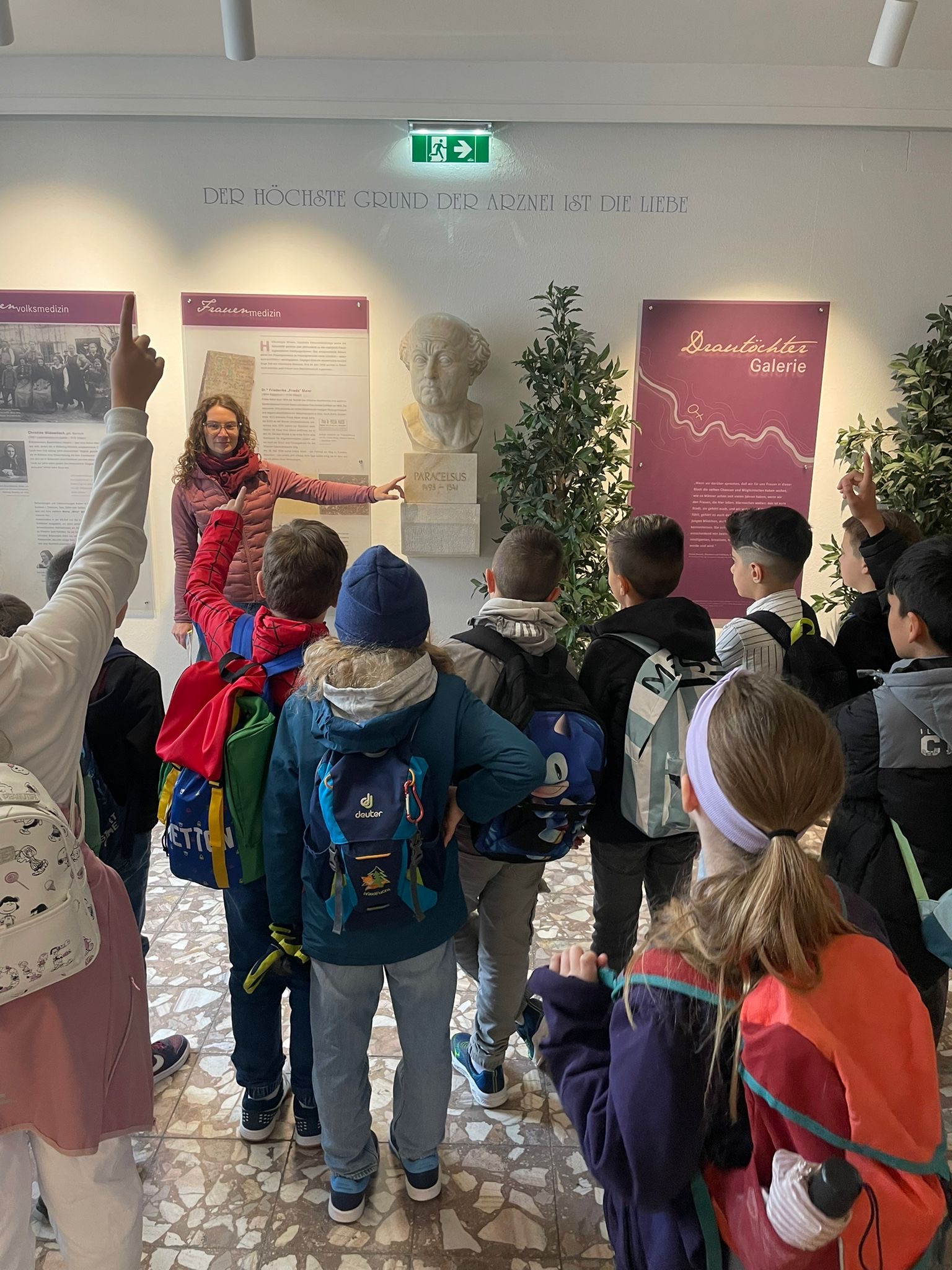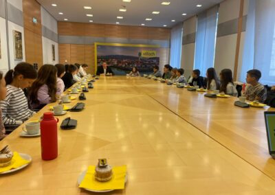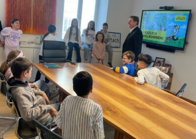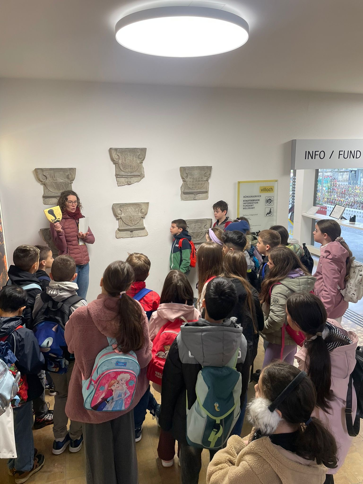 Am 16. April hatten wir einen ganz besonderen Tag, denn wir durften den Bürgermeister von Villach, Günther Albel, besuchen! Um 8:45 Uhr wurden wir freundlich empfangen und starteten mit einer spannenden Führung durch das Rathaus. Dort hörten wir viele interessante Geschichten über Villach, das Stadtwappen und wie es sich im Laufe der Zeit verändert hat. Besonders toll war die Büste von Dr. Paracelsus, über den wir viel gelernt haben. Danach hatten wir die Chance, den Bürgermeister persönlich zu treffen! Er überraschte uns mit leckerem Kakao und Muffins und beantwortete im Sitzungssaal viele Fragen, die wir am Vortag vorbereitet hatten. Es war super spannend, mehr über seine Arbeit zu erfahren! Außerdem durften wir sein Büro anschauen, das mit tollen Bildern geschmückt war. Um 10:00 Uhr mussten wir uns dann leider verabschieden, weil der Bürgermeister einen straffen Zeitplan hatte. Danach fuhren wir mit dem Bus zum Wasserwerk, wo uns Herr Ingenieur Reinold Tosin schon erwartete. Er erzählte uns, woher das Wasser in Villach kommt, und wusste viel über die 14 riesigen Speicherbehälter, die mehr als 23 Millionen Liter Wasser fassen können. Wir durften das Auffangbecken sehen und die Anlage, die das Wasser reinigt. Dabei erklärte uns Herr Tosin, dass das mit UV-Licht passiert – das klang echt spannend! Es war ein aufregender und lehrreicher Tag, den wir so schnell nicht vergessen werden!